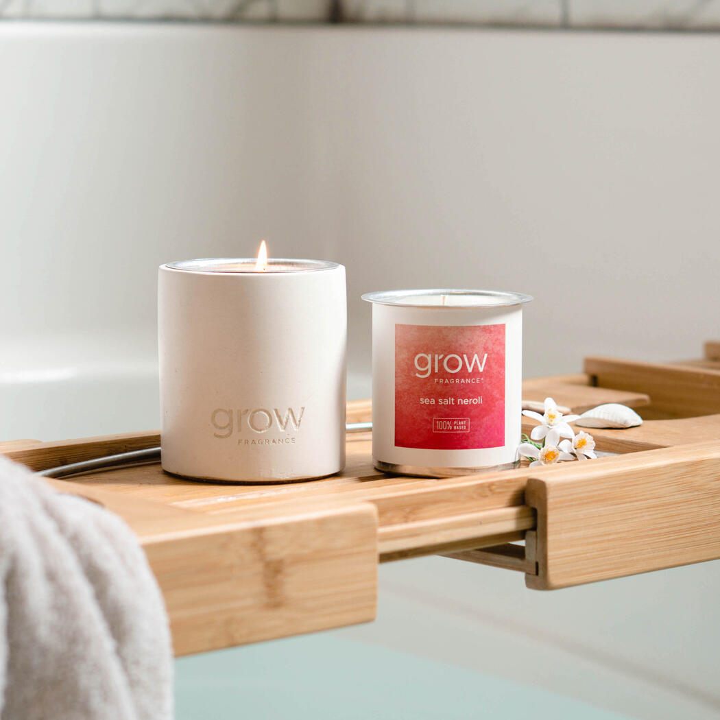 Our Grow customers are always sending us amazing scent ideas and we truly keep track of every single one and use that feedback to develop our new fragrances!A new scent can take anywhere from weeks to months and some we never get quite right! (Some of our most popular sprays sometimes just don’t burn right in a candle because of the natural materials!)So we start with our library of hundreds of samples from only our most trusted vendors, narrowing it down to several notes and oils. Then the fun begins! We smell each sample then mix and match until we create several blends we like.Once we decide on a scent, we begin the certification process to ensure it’s 100% plant-based, have our graphic designer create a beautiful new label, and get a photoshoot on the schedule!